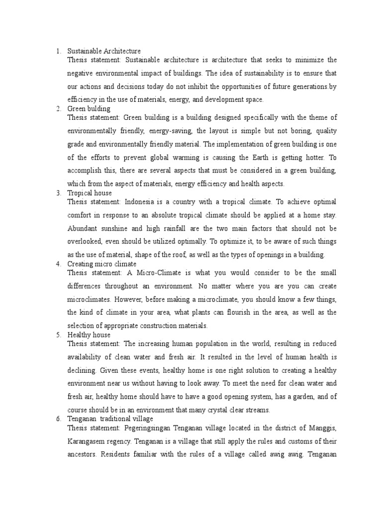 Thesis Statement Green Building Sustainable Architecture