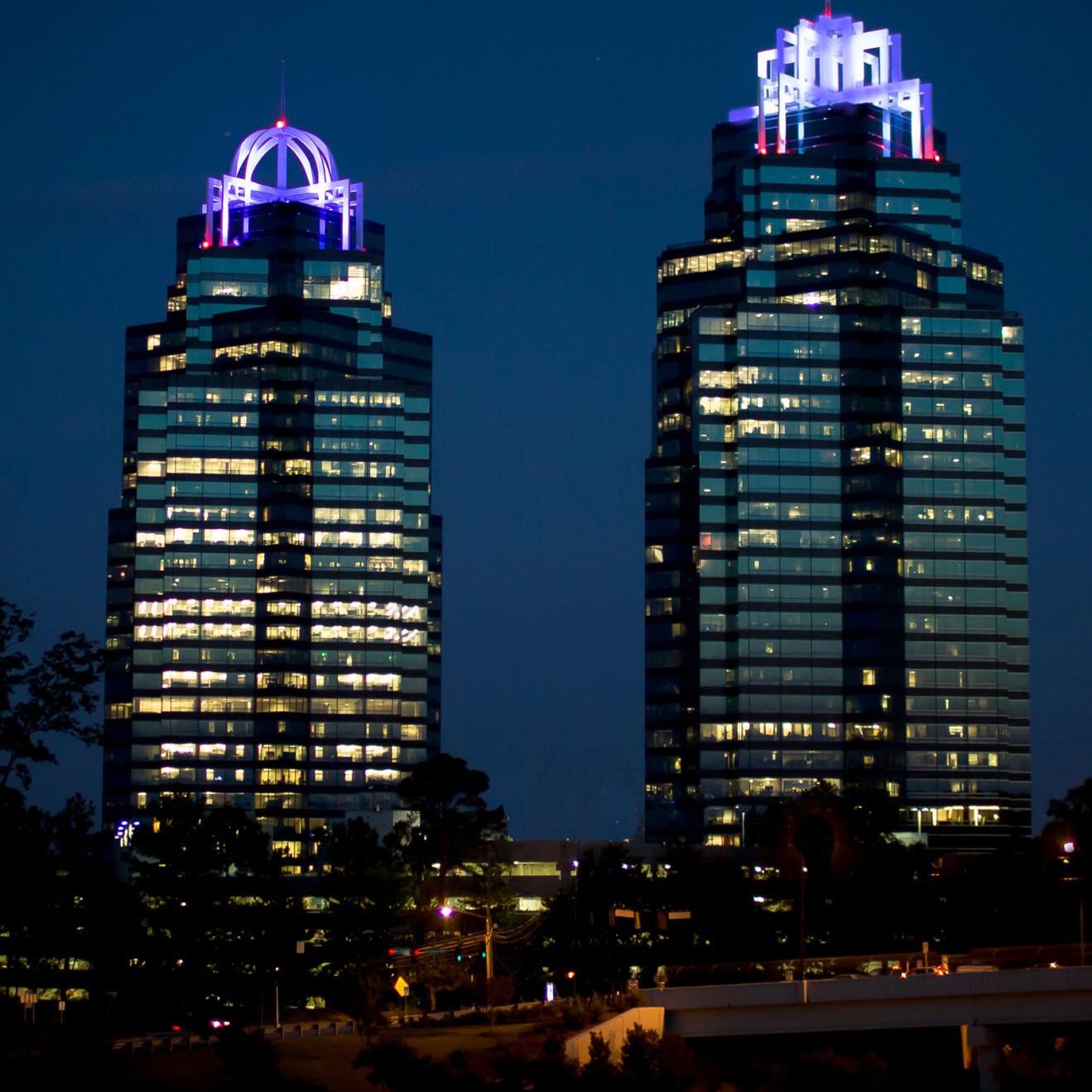 Concourse Towers King And Queen Towers Sandy Springs Georgia Buildings Architecture Urban Night City Skyline Lands Sandy Springs Georgia Landscape Sandy Spring